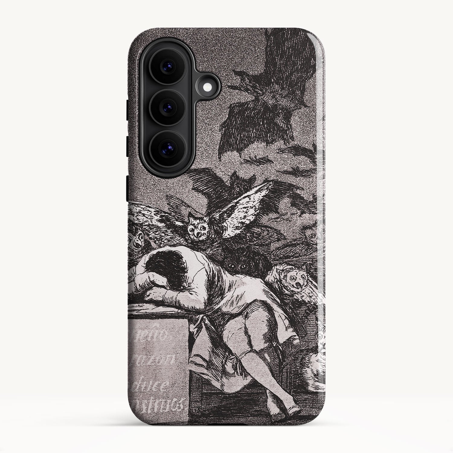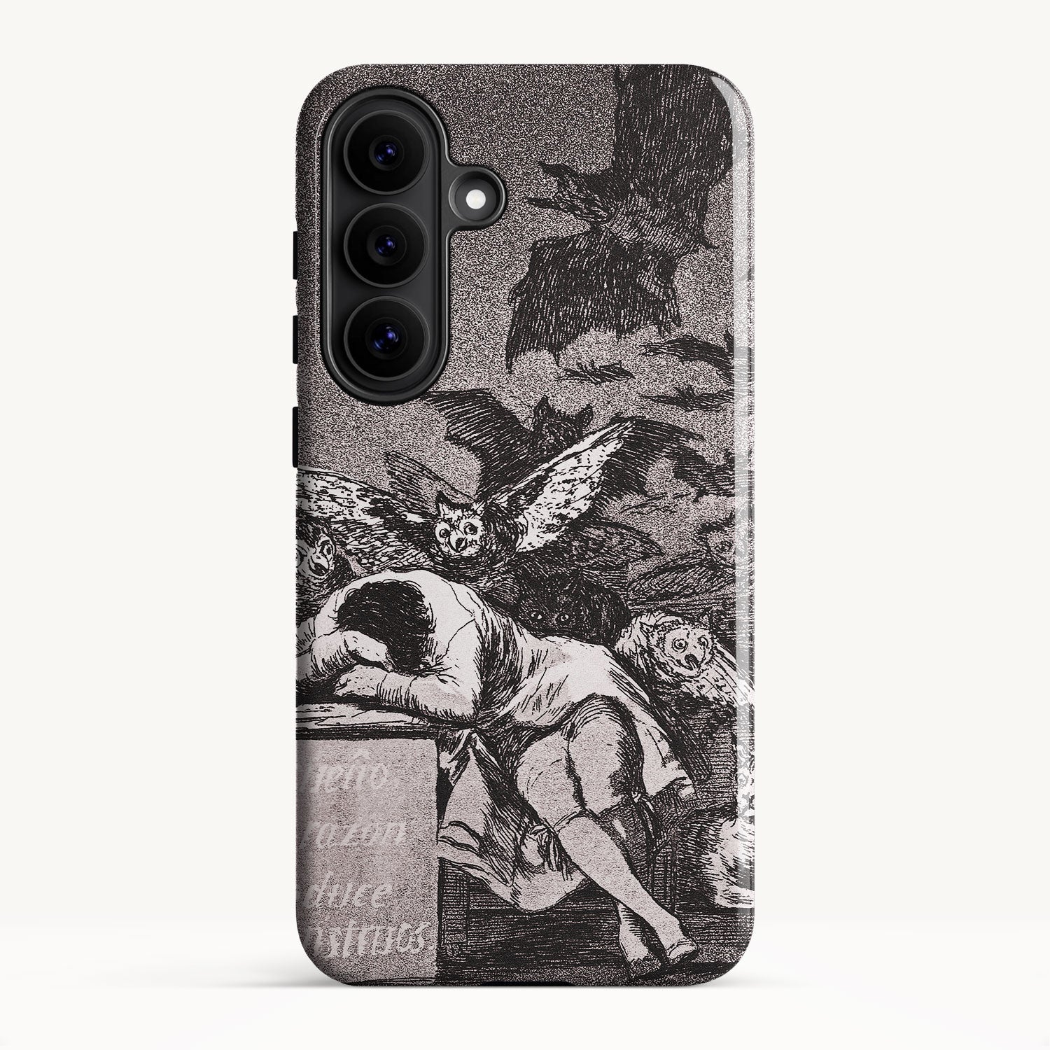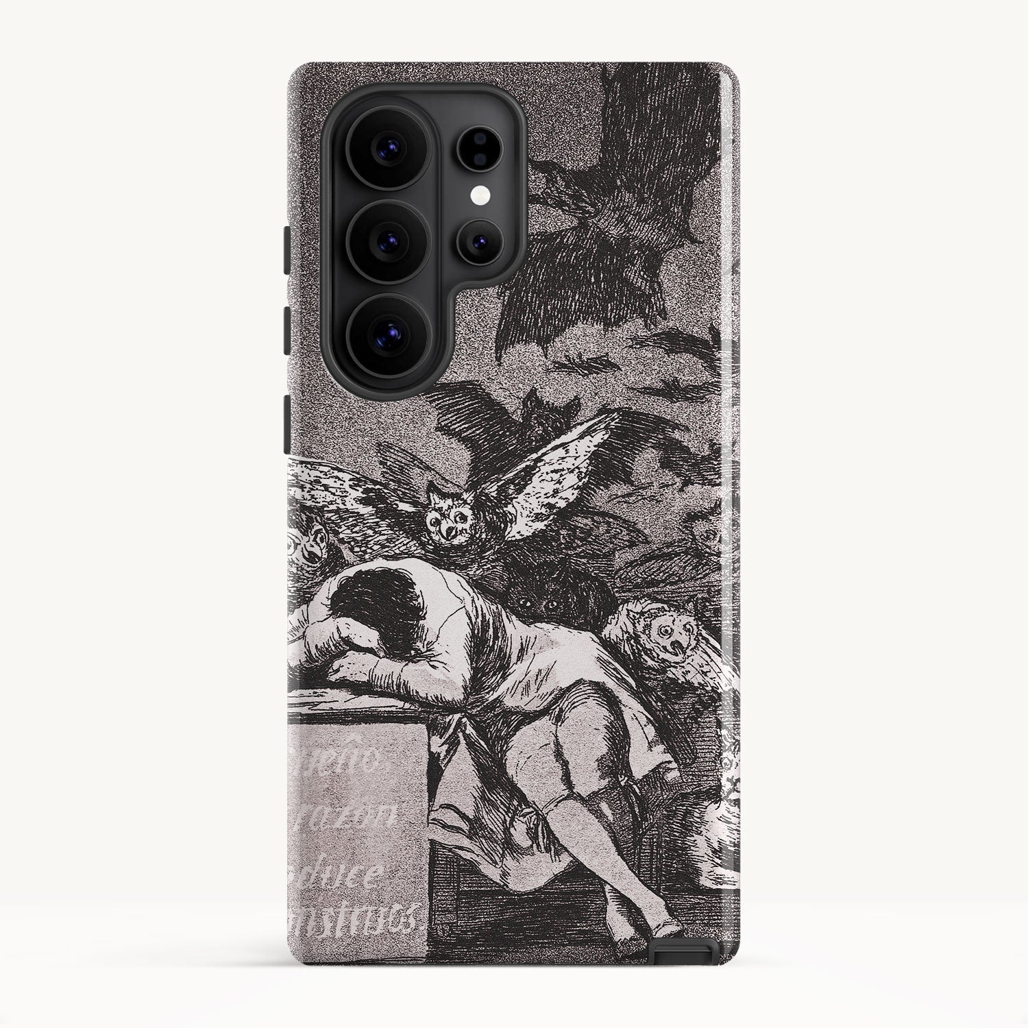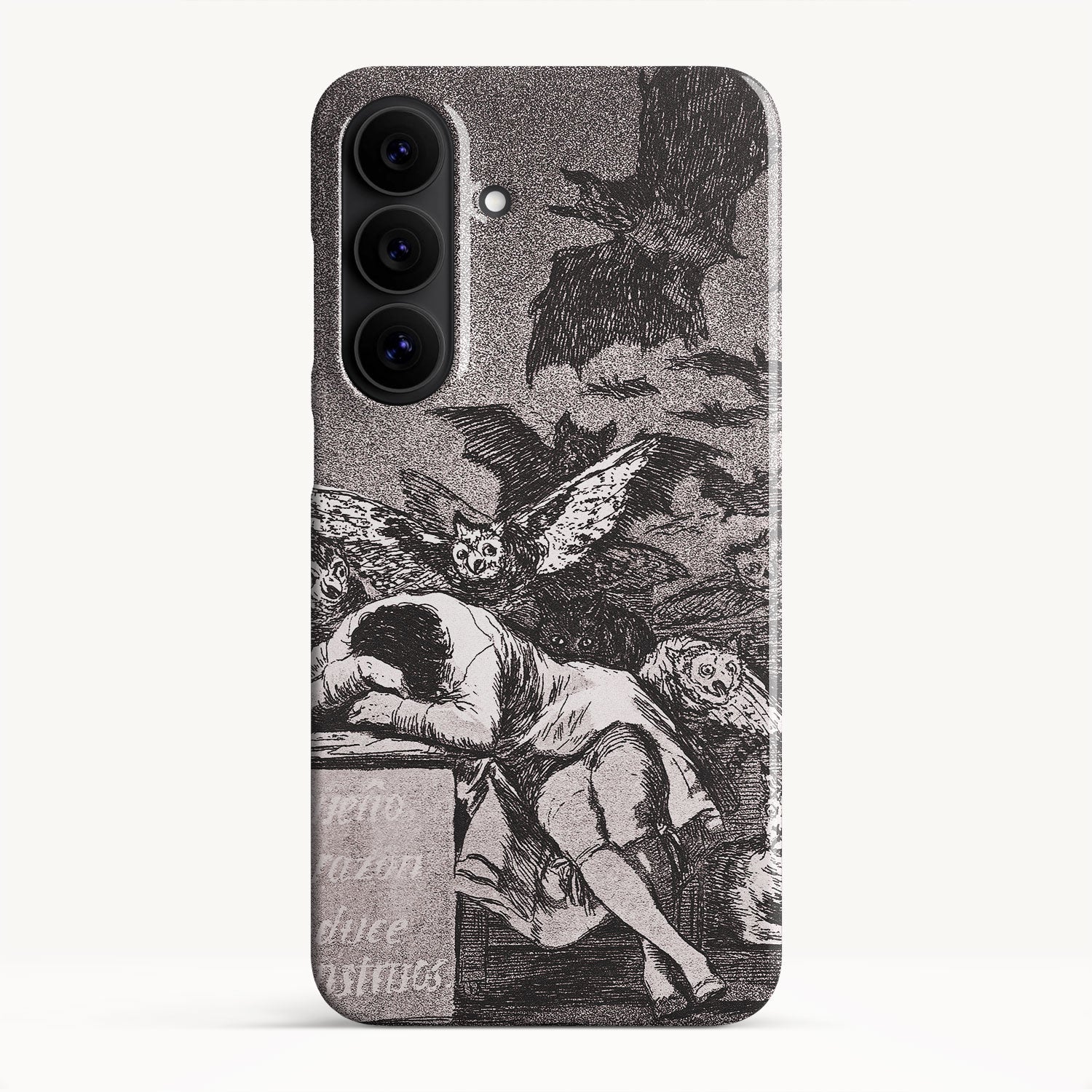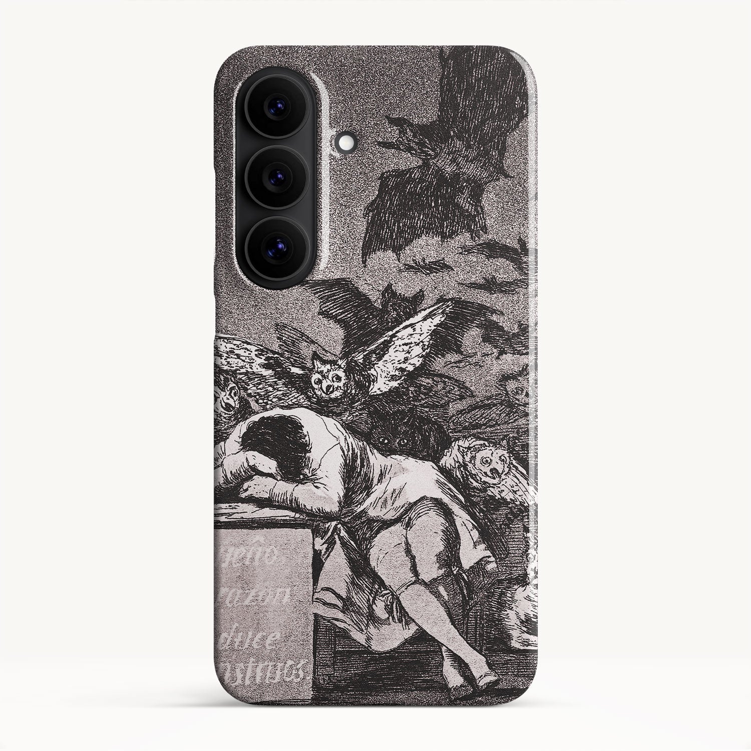 The etching depicts the Goya himself, slumbering at his desk while surrounded by eerie and grotesque creatures. Bats, owls, and nightmarish entities lurk in the shadows, symbolizing the irrational and fearsome aspects of the human psyche that emerge when reason is dormant.