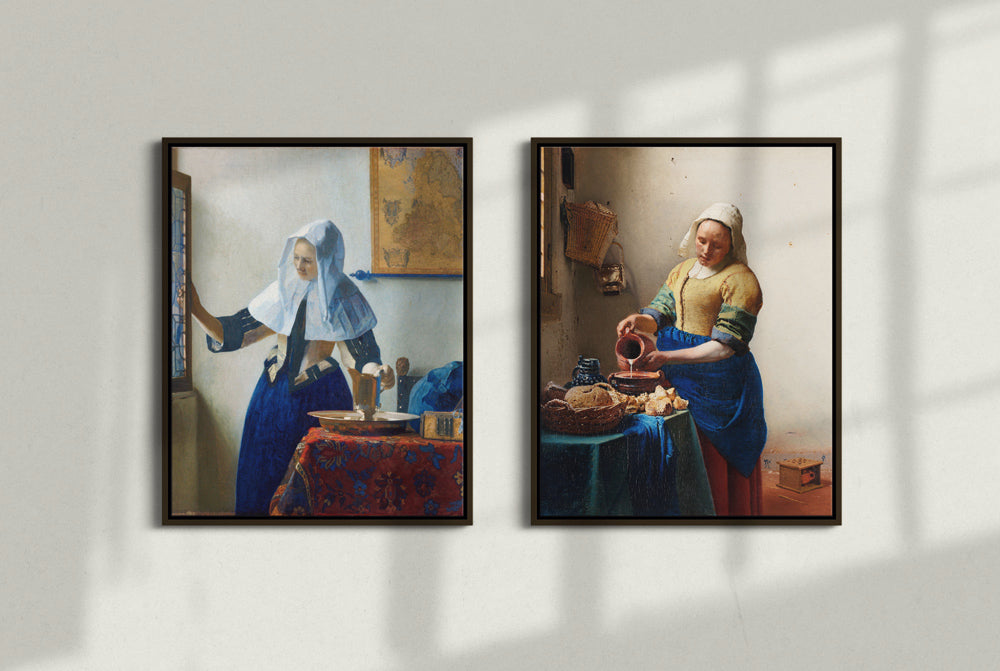 100% cotton, ultra smooth canvas with a vivid museum grade art print. Tightly wrapped by hand on a wooden base and mounted in a decorative frame with a walnut texture.