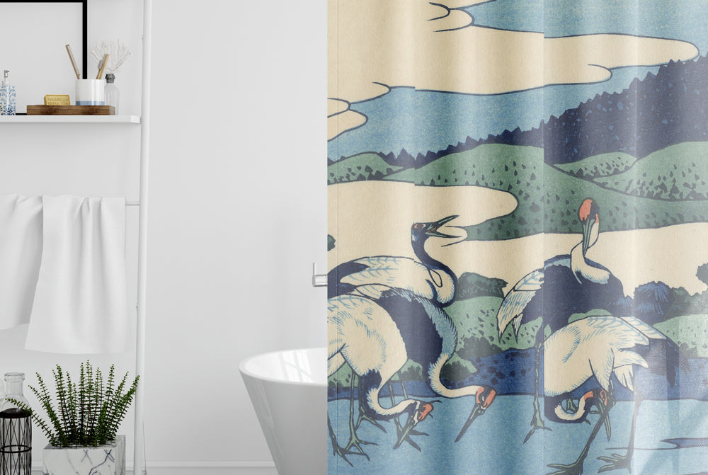 Light, water repellent curtain with large format artwork - a major addition to any bathroom decor.