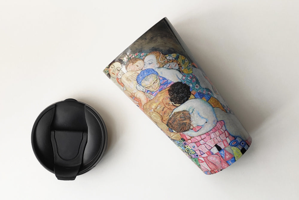 Double walled travel mug with a sealed lid to keep your drinks hot or cold without a risk of spilling them on the go or around the house.