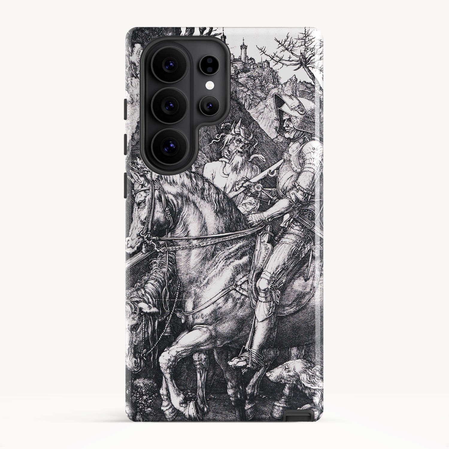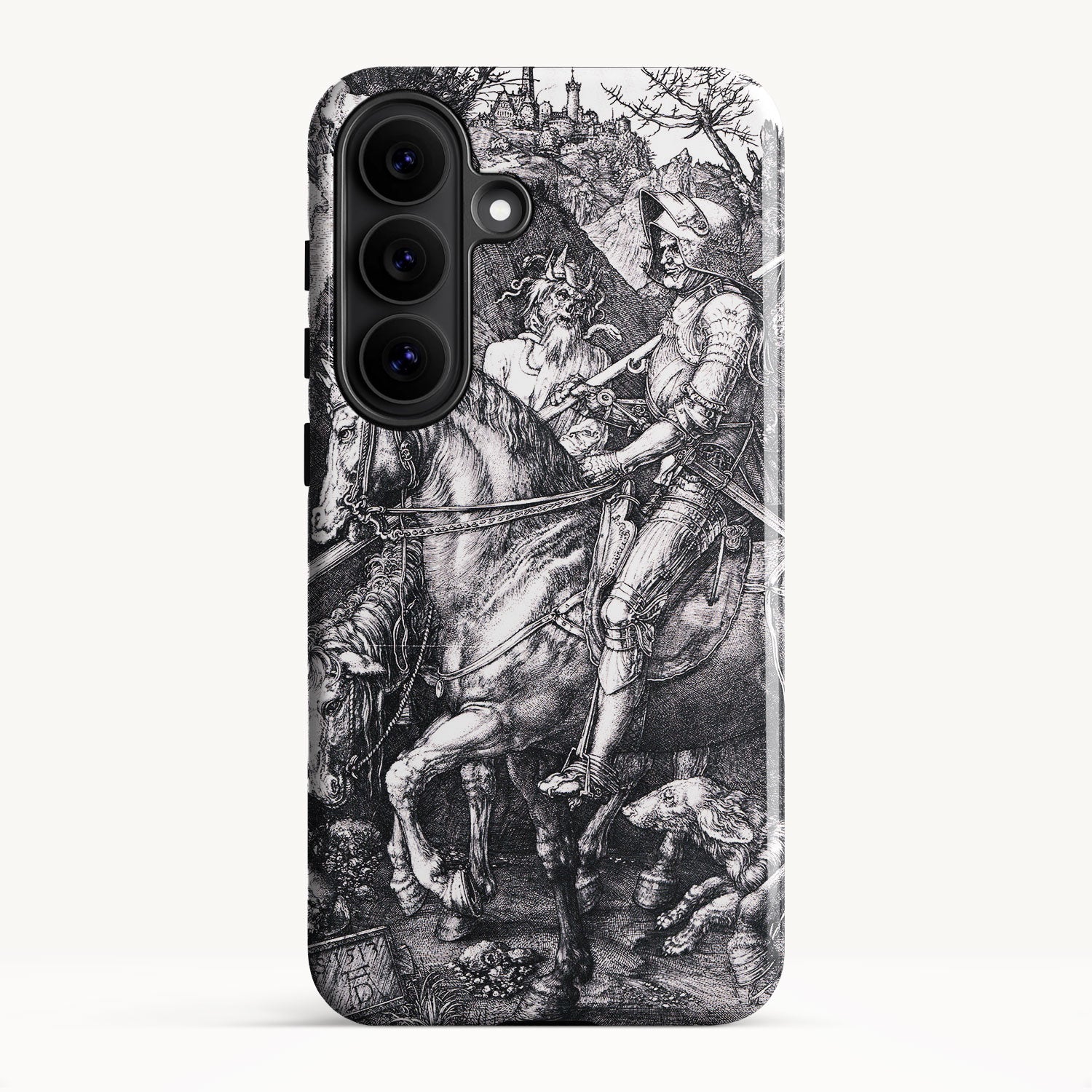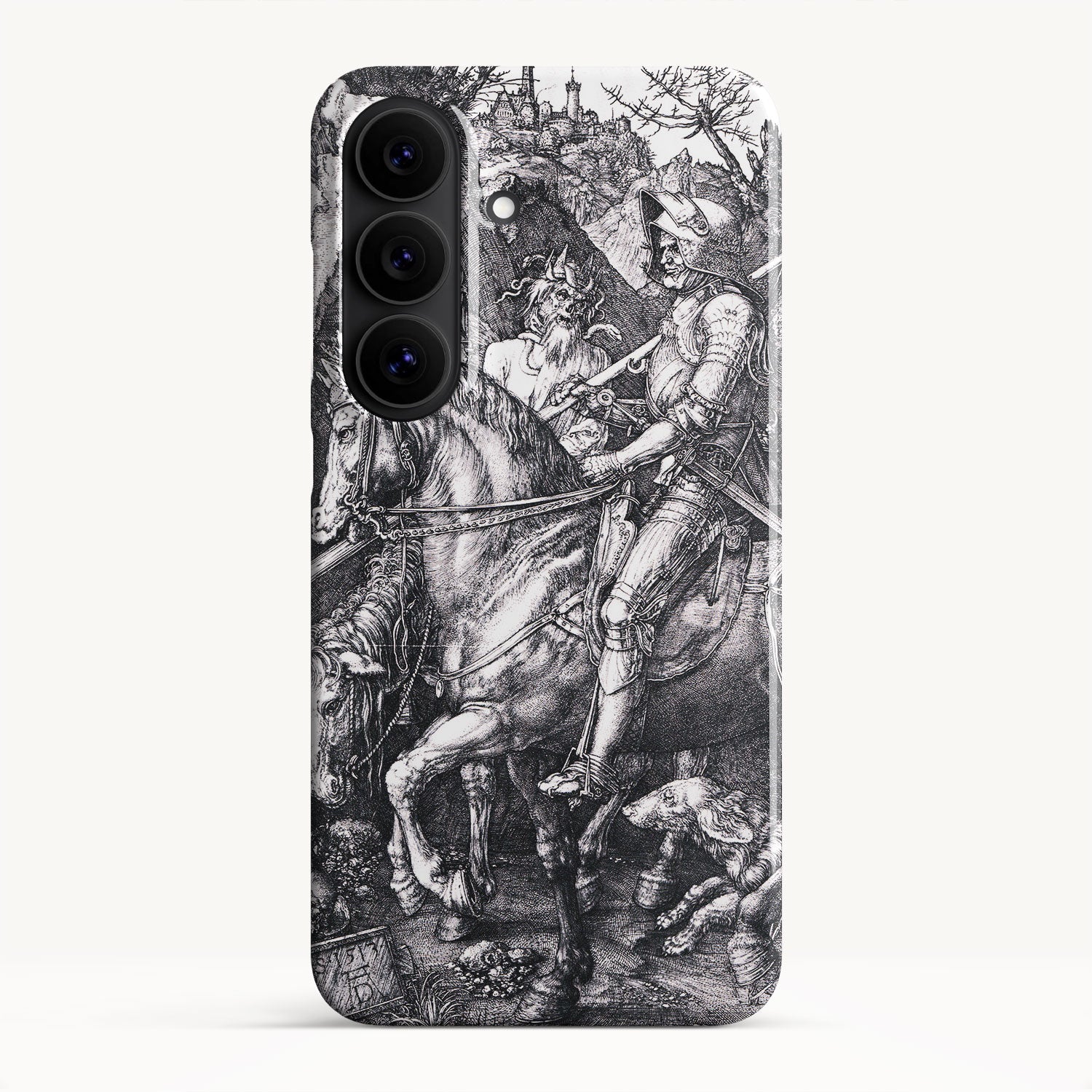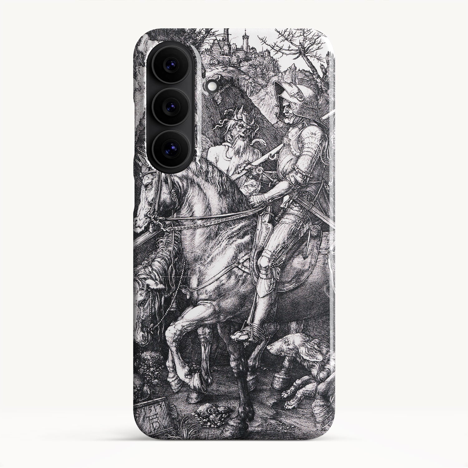 Despite the ominous presence of Death and the Devil, the knight maintains a resolute and stoic demeanor, symbolizing the virtues of courage and moral fortitude. The piece explores themes of chivalry, morality, and the human condition, making it a remarkable example of Northern Renaissance art.